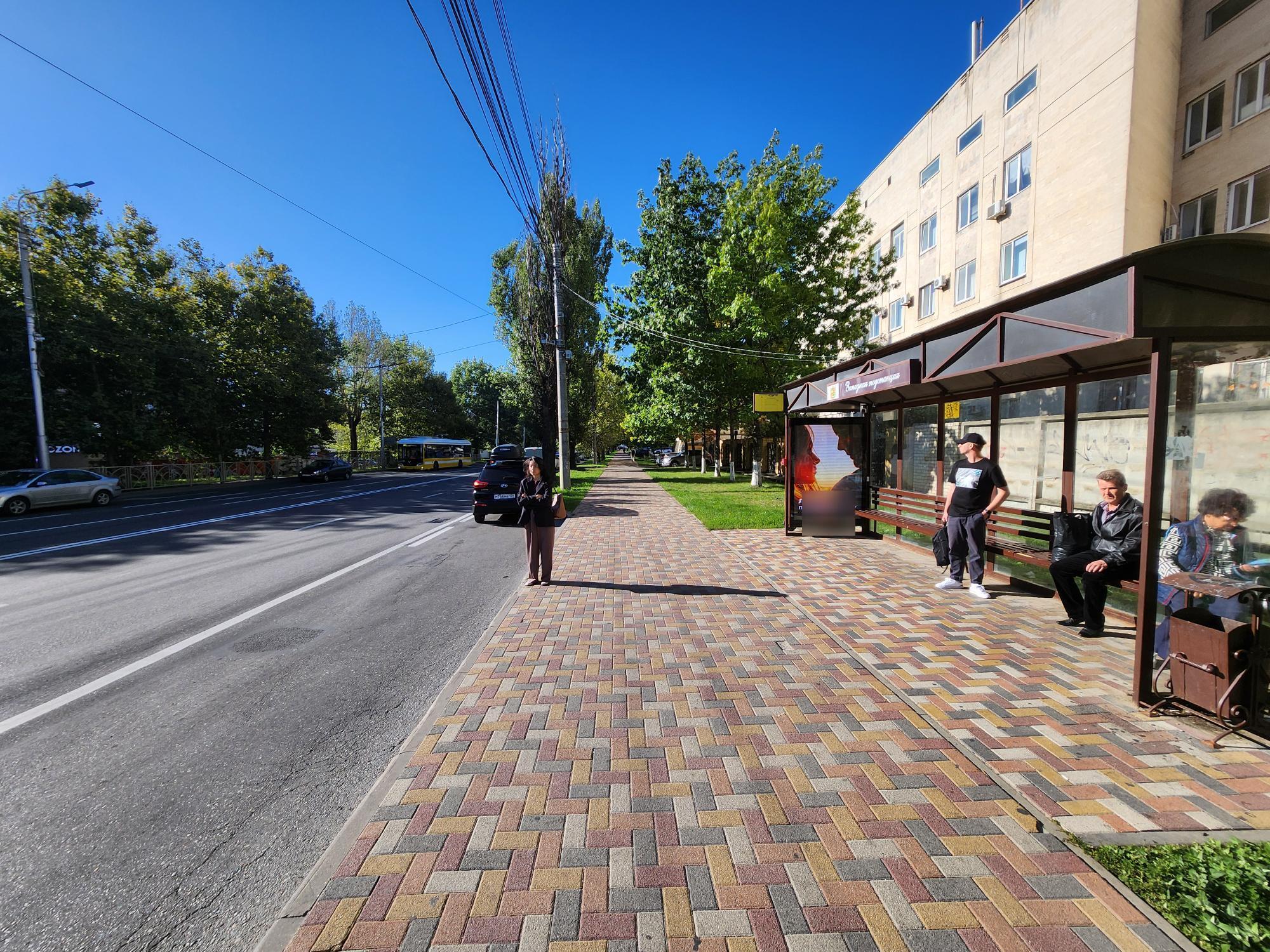 Фотография рекламного носителя, тип: Остановка 1.8x1.2, адрес: Доваторцев ул. Х Мира ул., д.450, Ставрополь, Ставропольский край, Россия. Сторона А1 №1384526