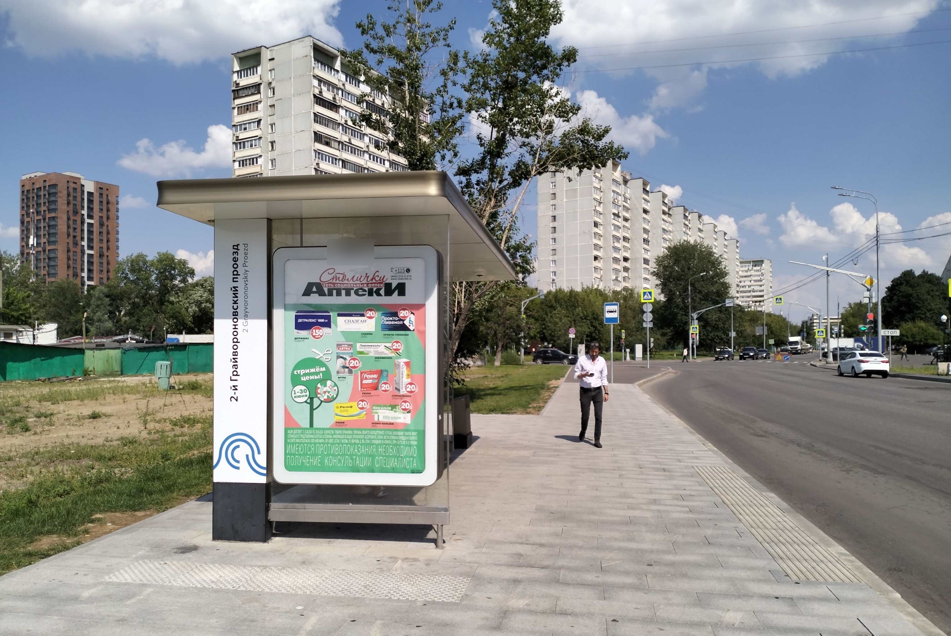 Остановка 1.8x1.2, Грайвороновская ул., д.12, корп.2, 2-й Грайвороновский пр-зд., в/ц, Москва