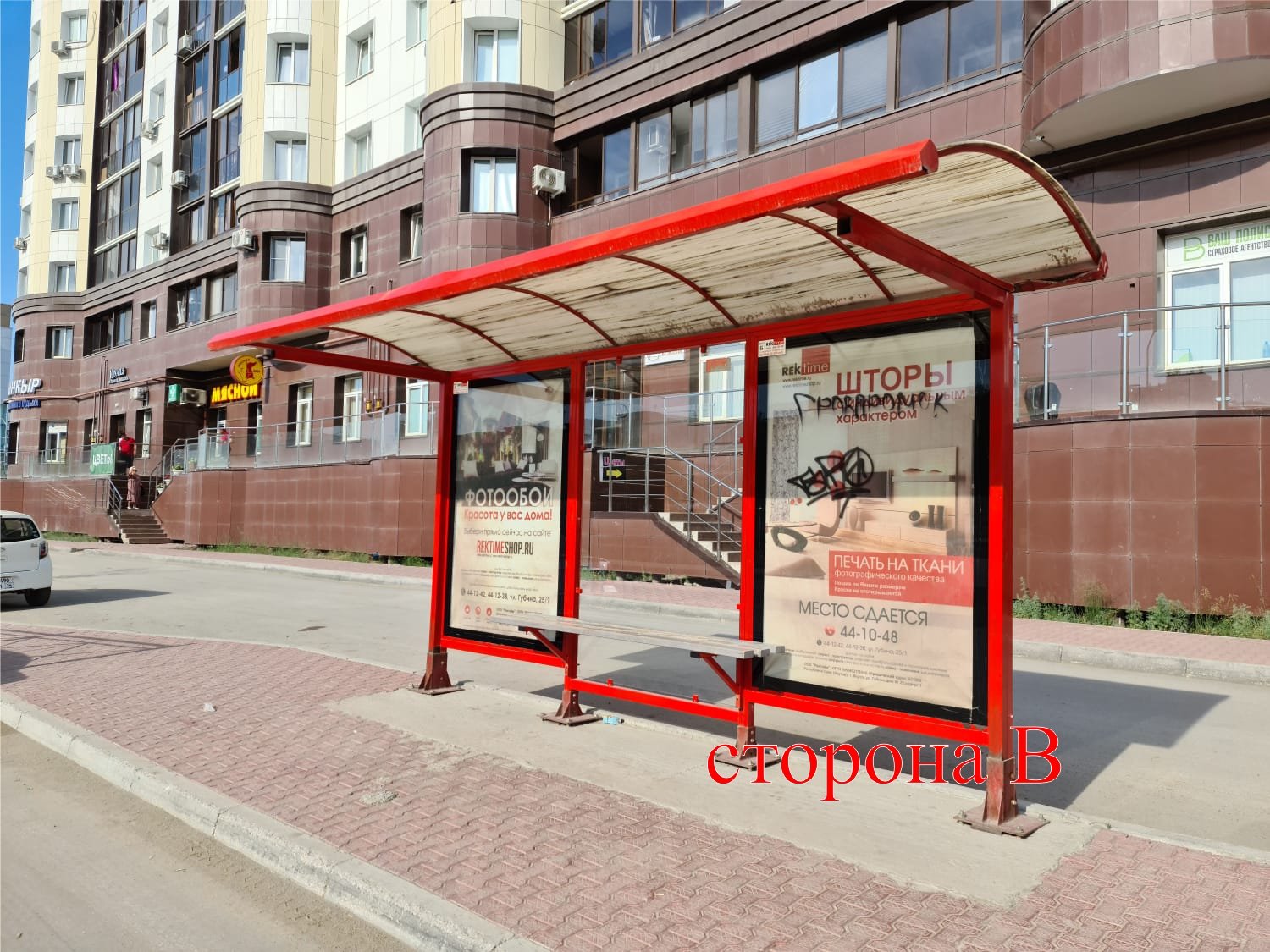 Фотография рекламного носителя, тип: Остановка 1.8x1.2, адрес: Губина ул., д.11, Якутск, Республика Саха (Якутия), Россия. Сторона Б №1364328