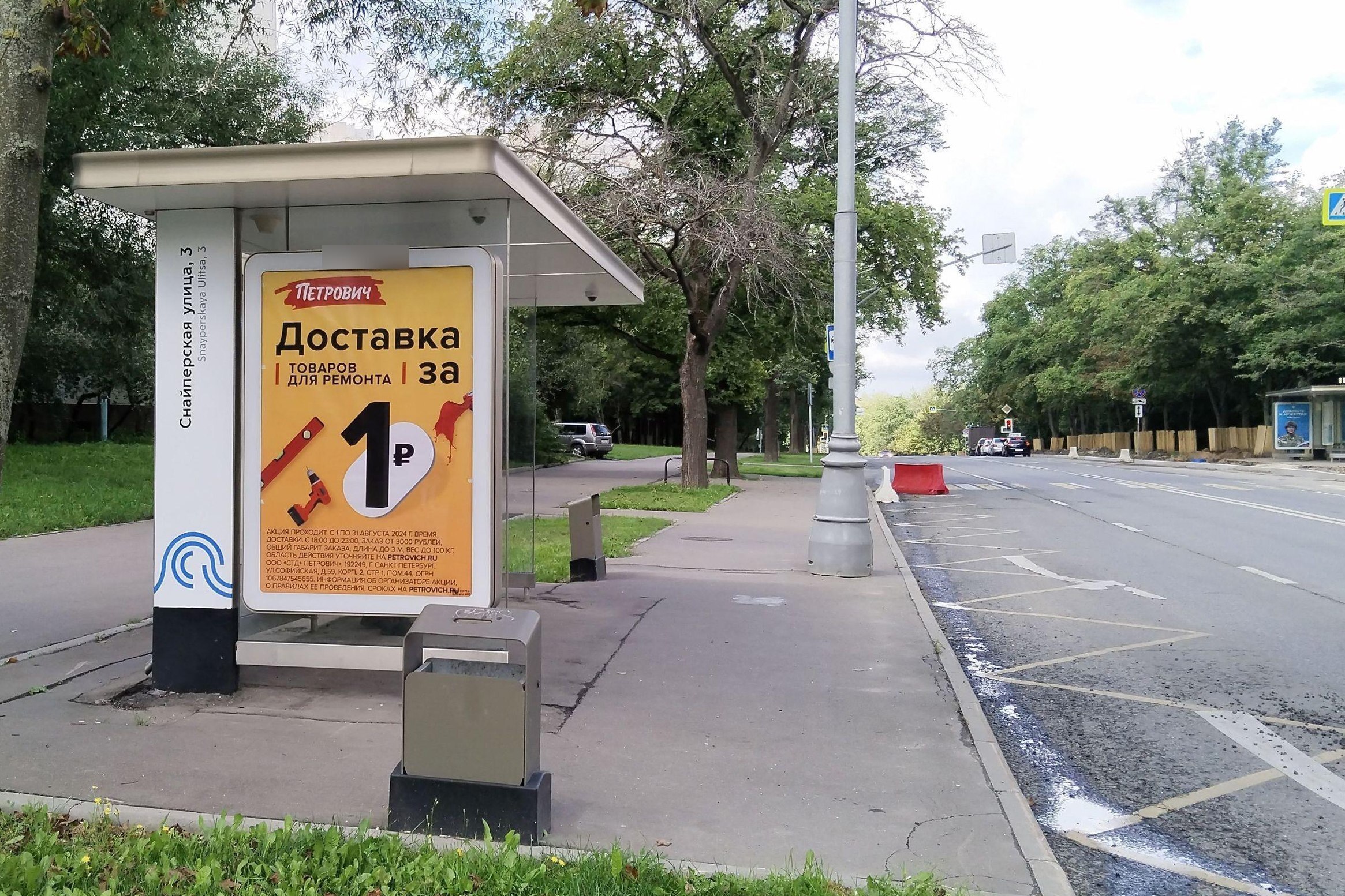 Остановка 1.8x1.2, Молдагуловой ул., ост. Снайперская ул., 3, поз.2, Москва