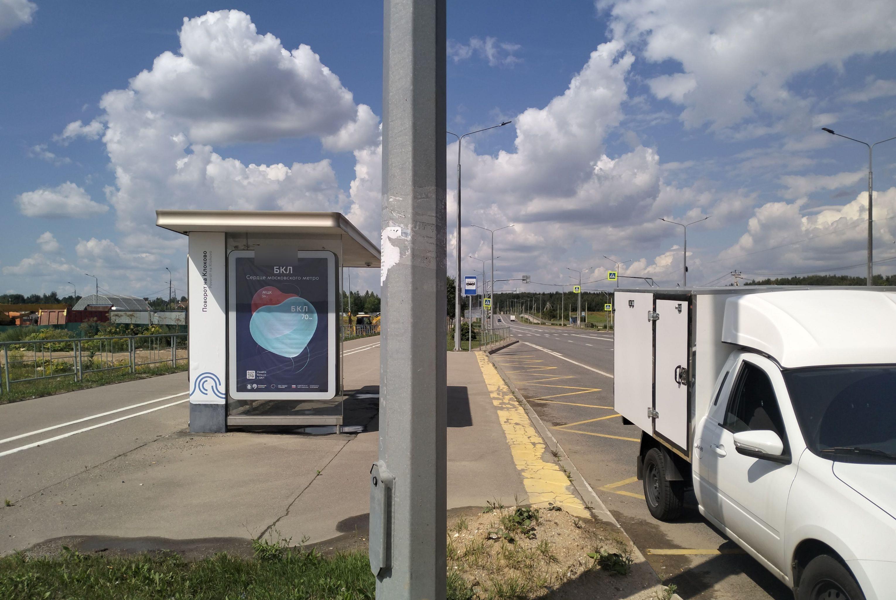 Реклама на остановке 1.8x1.2, Первомайское пос., Александра Печерского ул., ост. "Поворот на Клоково", Москва
