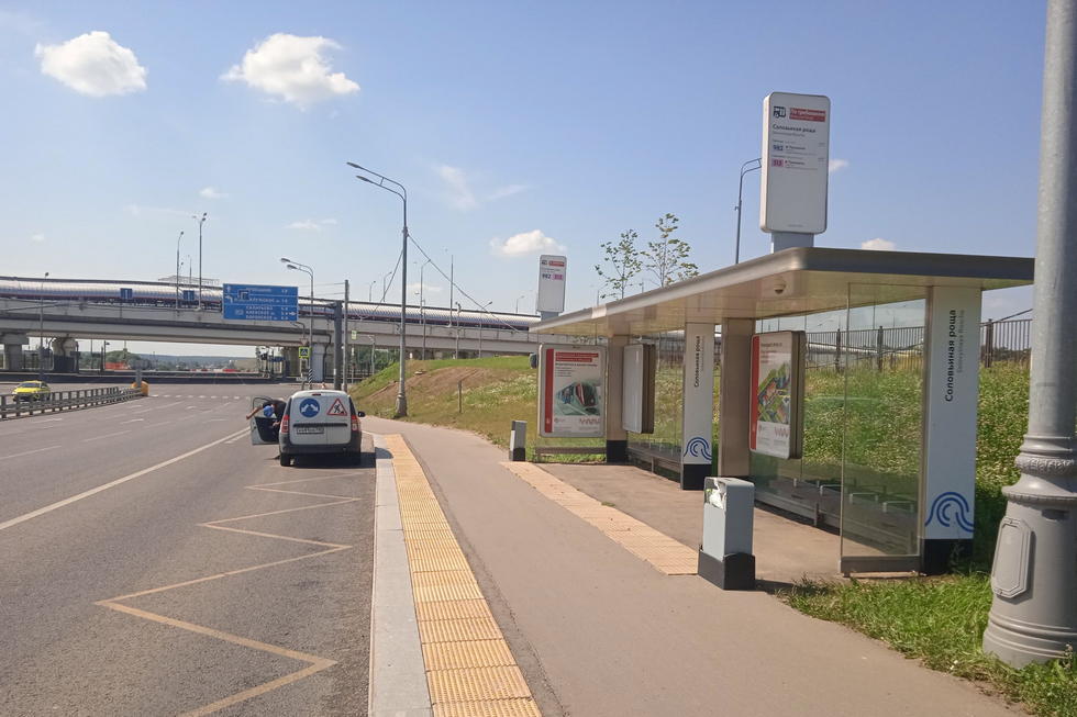 Остановка 1.8x1.2, Сосенское пос., ТиНАО, Новомихайловское ш., квартал 35, ост. "Соловьиная роща", Москва