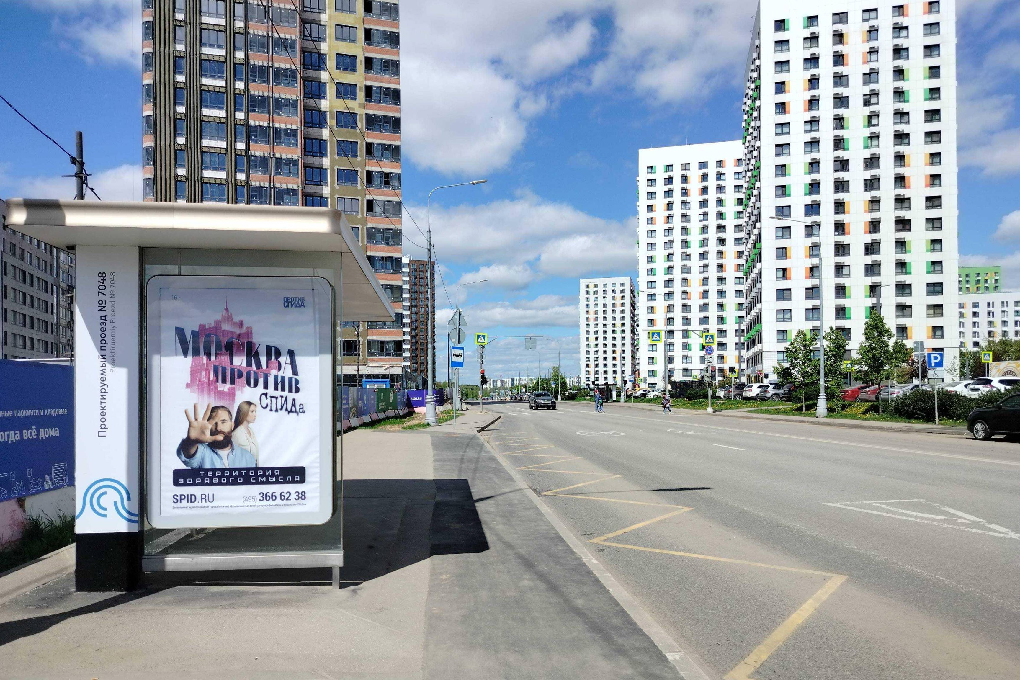 Остановка 1.8x1.2, ТиНАО, Коммунарка пос., Проектируемый пр-зд. № 7048, квартал 191, ост. "Проектируемый пр-д № 7048", Москва