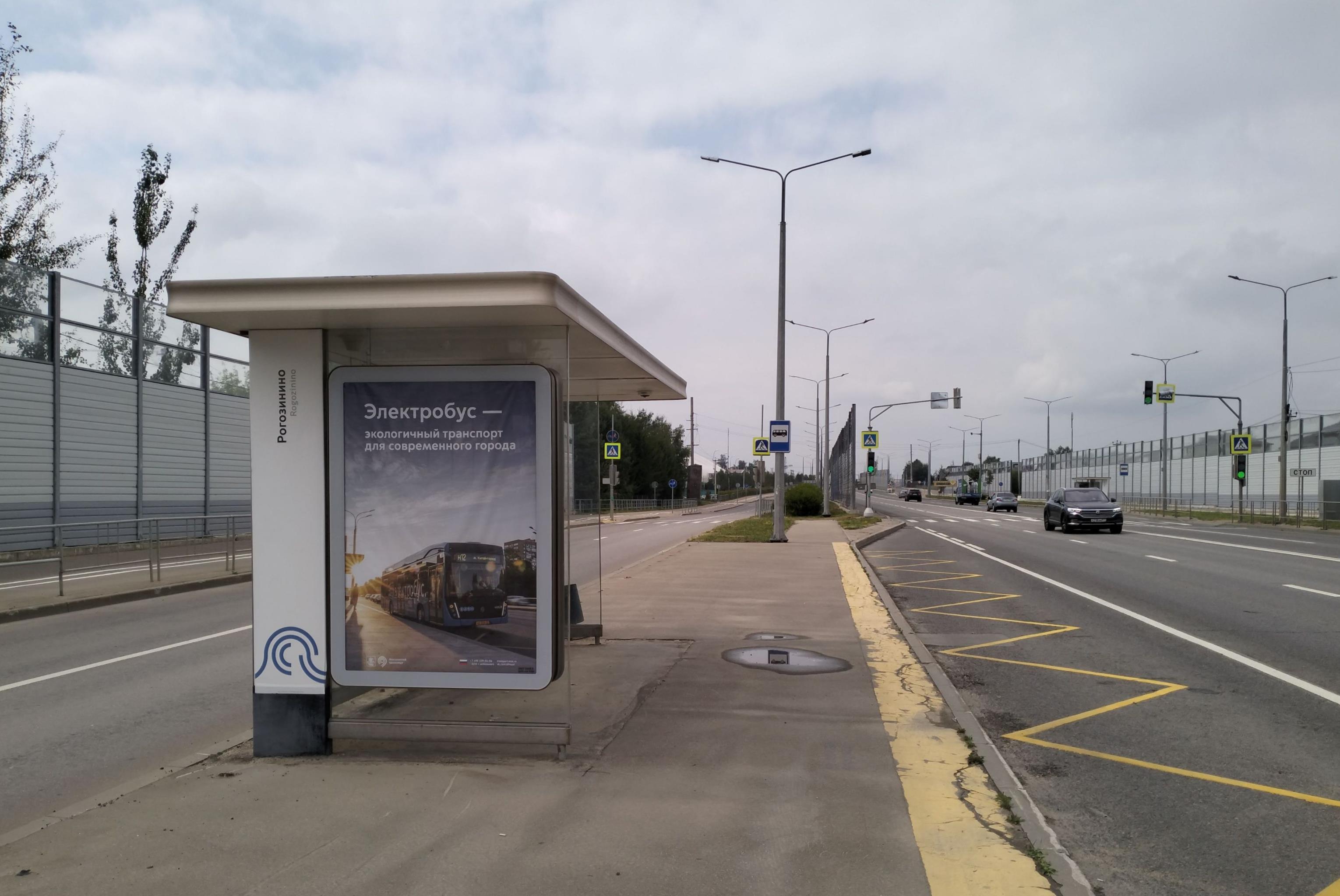 Реклама на остановке 1.8x1.2, ТиНАО, Первомайское пос., Александра Печерского ул., квартал 28, ост. "Рогозинино-2", Москва