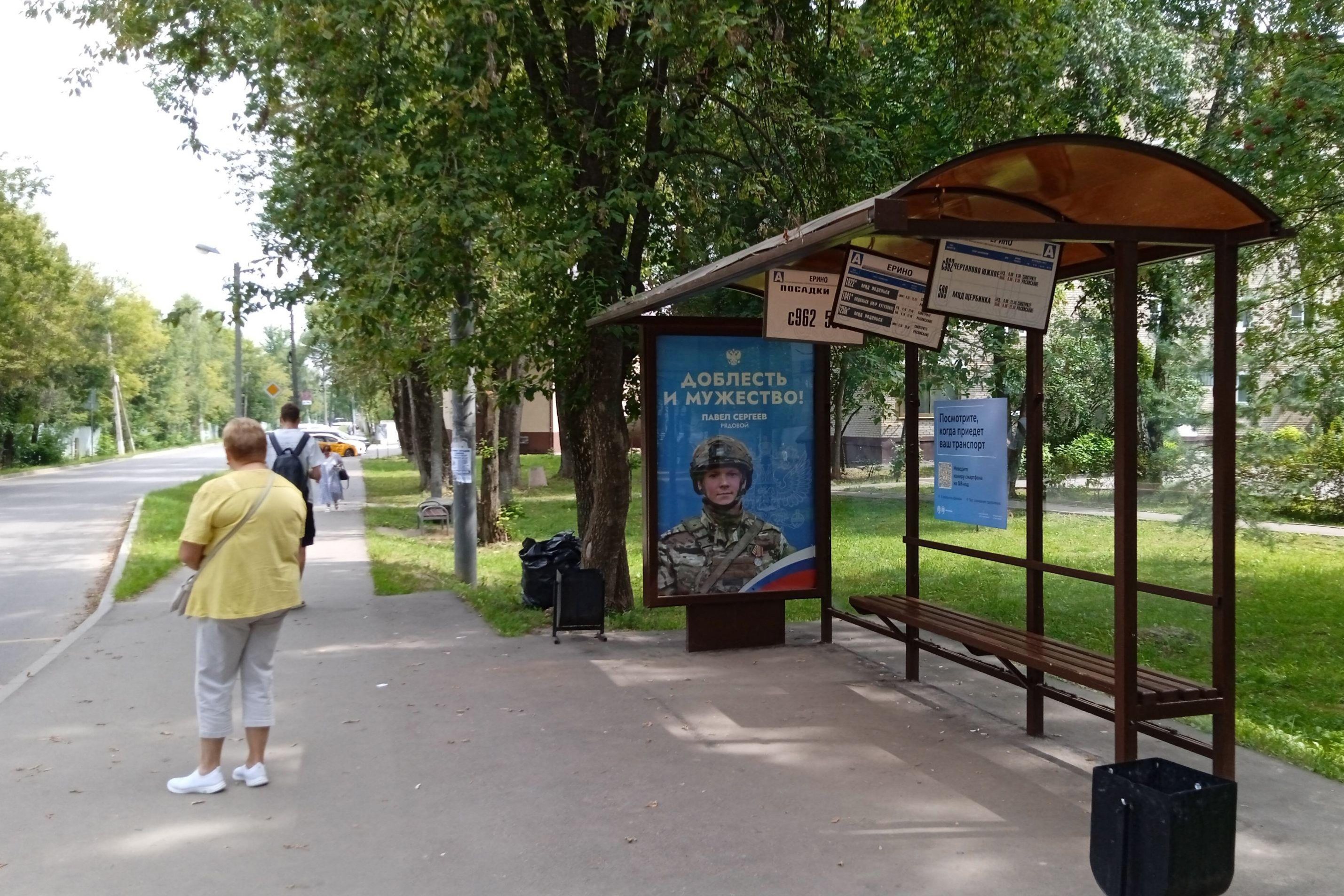 Остановка 1.8x1.2, ТиНАО, Рязановское пос., Ерино пос., д.2, ост. "Ерино", Москва