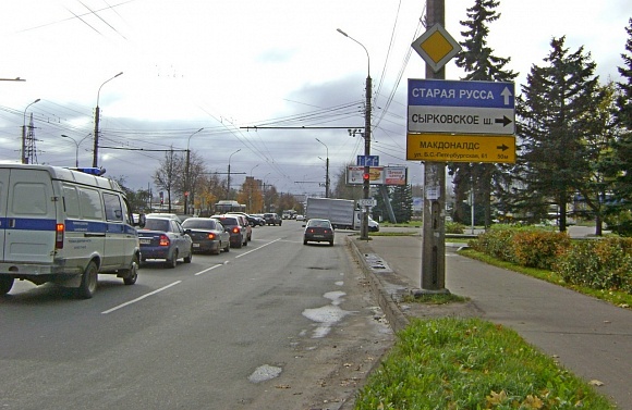 Дорожный указатель, Большая Санкт-Петербургская ул., Колмово, поз.2, Великий Новгород