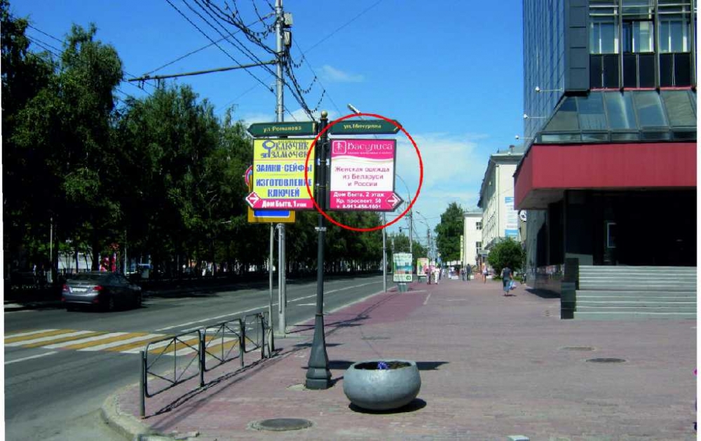 Фотография рекламного носителя, тип: Дорожный указатель, адрес: Красный пр-т., д.50, Новосибирск, Новосибирская область, Россия. Сторона A №183359