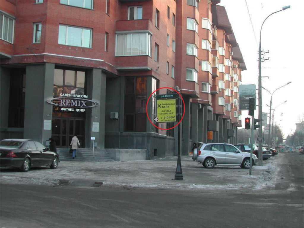 Фотография рекламного носителя, тип: Дорожный указатель, адрес: Максима Горького ул., д.51 Х Урицкого ул., Новосибирск, Новосибирская область, Россия. Сторона A №183389