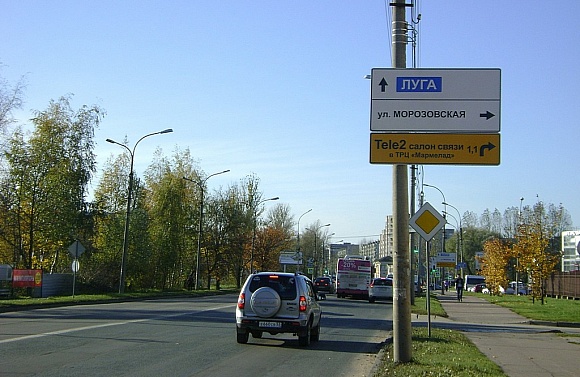 Дорожный указатель, Нехинская ул. Х Морозовская ул., Великий Новгород