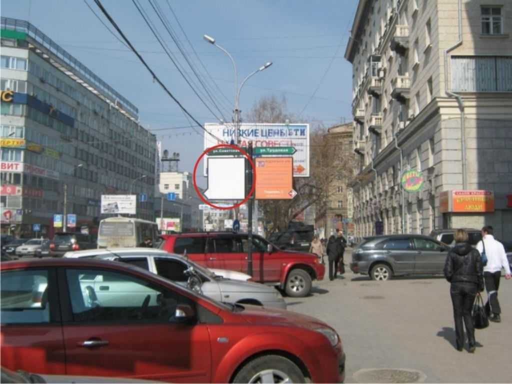 Фотография рекламного носителя, тип: Дорожный указатель, адрес: Орджоникидзе ул., д.23 Х Трудовая ул., Новосибирск, Новосибирская область, Россия. Сторона A №183393