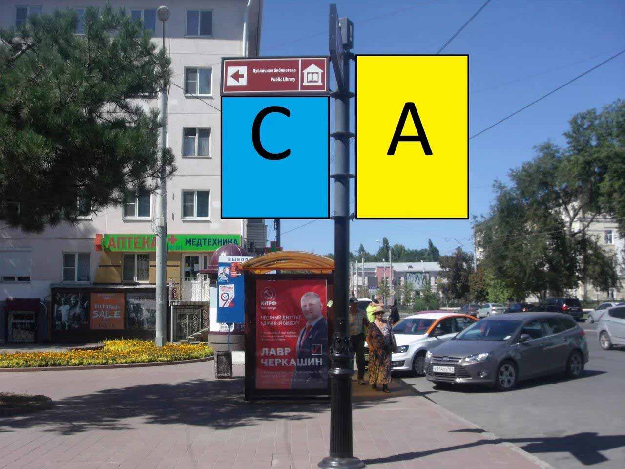 Дорожный указатель, Театральный пр-т., д.46 X Пушкинская ул., д.245, Ростов-на-Дону