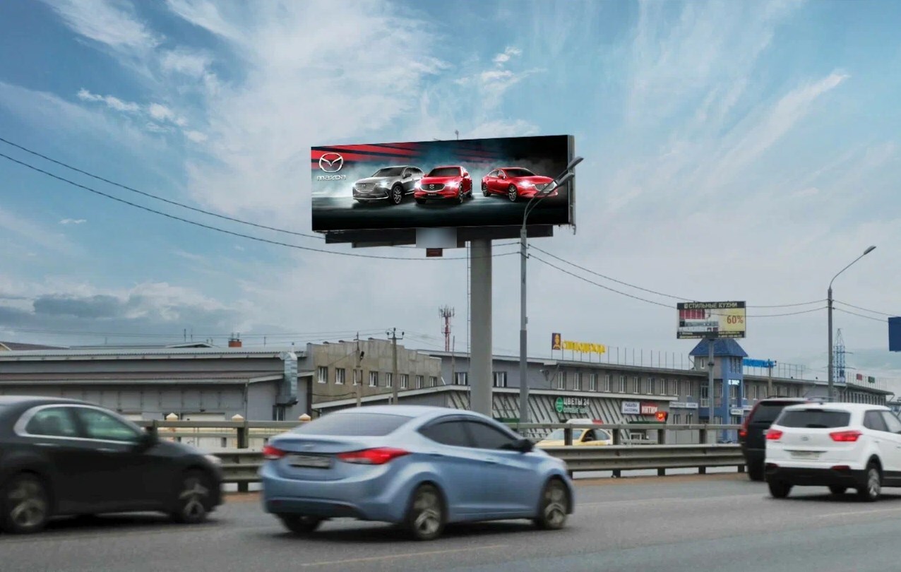 в Москву. Ролик 5 сек., блок 60 сек., показов в блоке 1, количество показов в сутки 1440, время работы 24 ч. Разрешение экрана 940х300 px