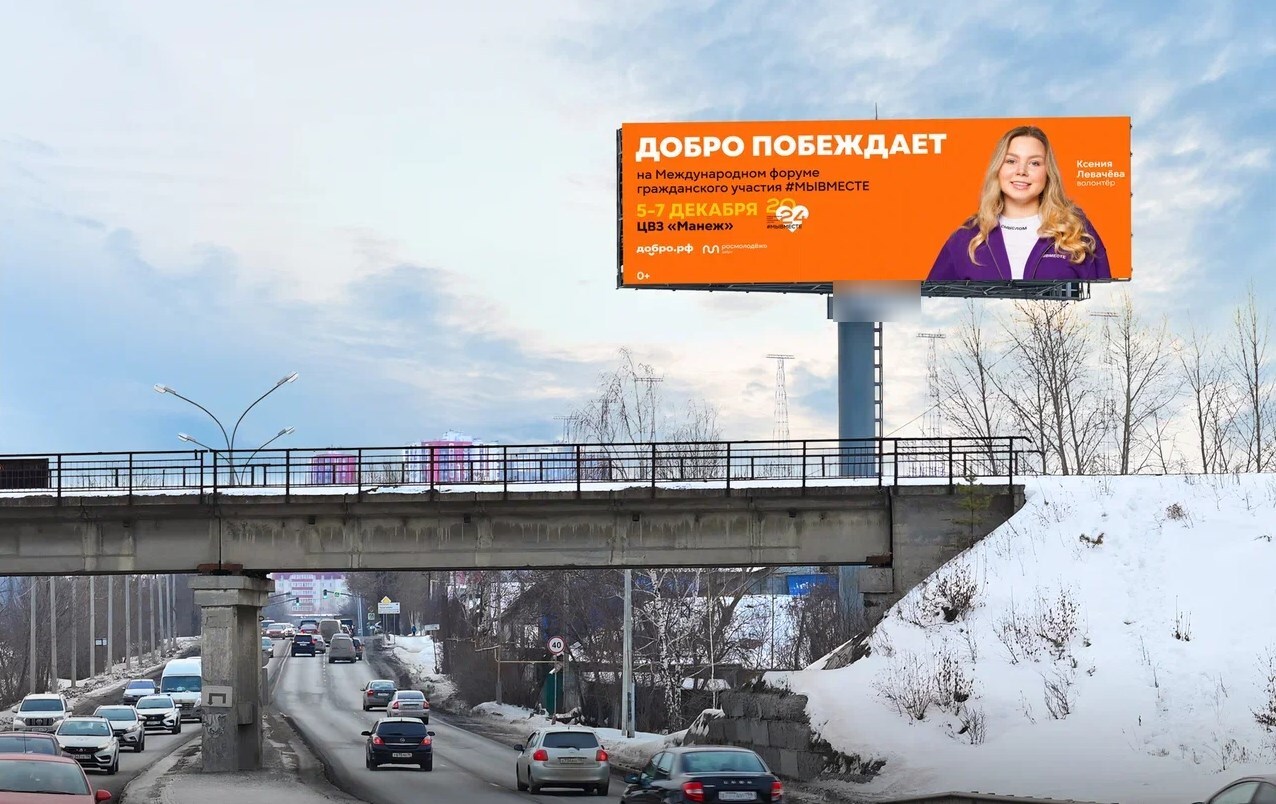 Из города. Ролик 5 сек., блок 60 сек., показов в блоке 1, количество показов в сутки 1440, время работы 24 ч. Разрешение экрана 1410х450 px