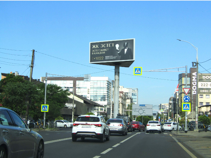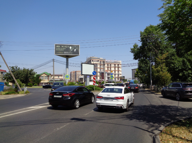 - Описание рекламной конструкции: Трехсторнняя статичная освещенная конструкция формата 5х12 установлена на кольце улиц Красных Партизан и Аэродромная, в одном из самых оживленных мест центральной части города. Плоскости РК вращается вокруг своей оси, что позволяет демонстрировать рекламу на все 360 градусов. Кольцо является соединяющим звеном между Западным, Центральным и Прикубанским округами, связывая между собой и с административно-деловой частью города спальные районы: Юбилейный и Фестивальный. В непосредственной близости находятся: отель Вилла Диас, ресторан Мадьяр, ресторан "у Близнецов", ресторан Рояль, клиника Шале Сантэ, клиника репродукции OXY, магазин мужской одежды Франт.