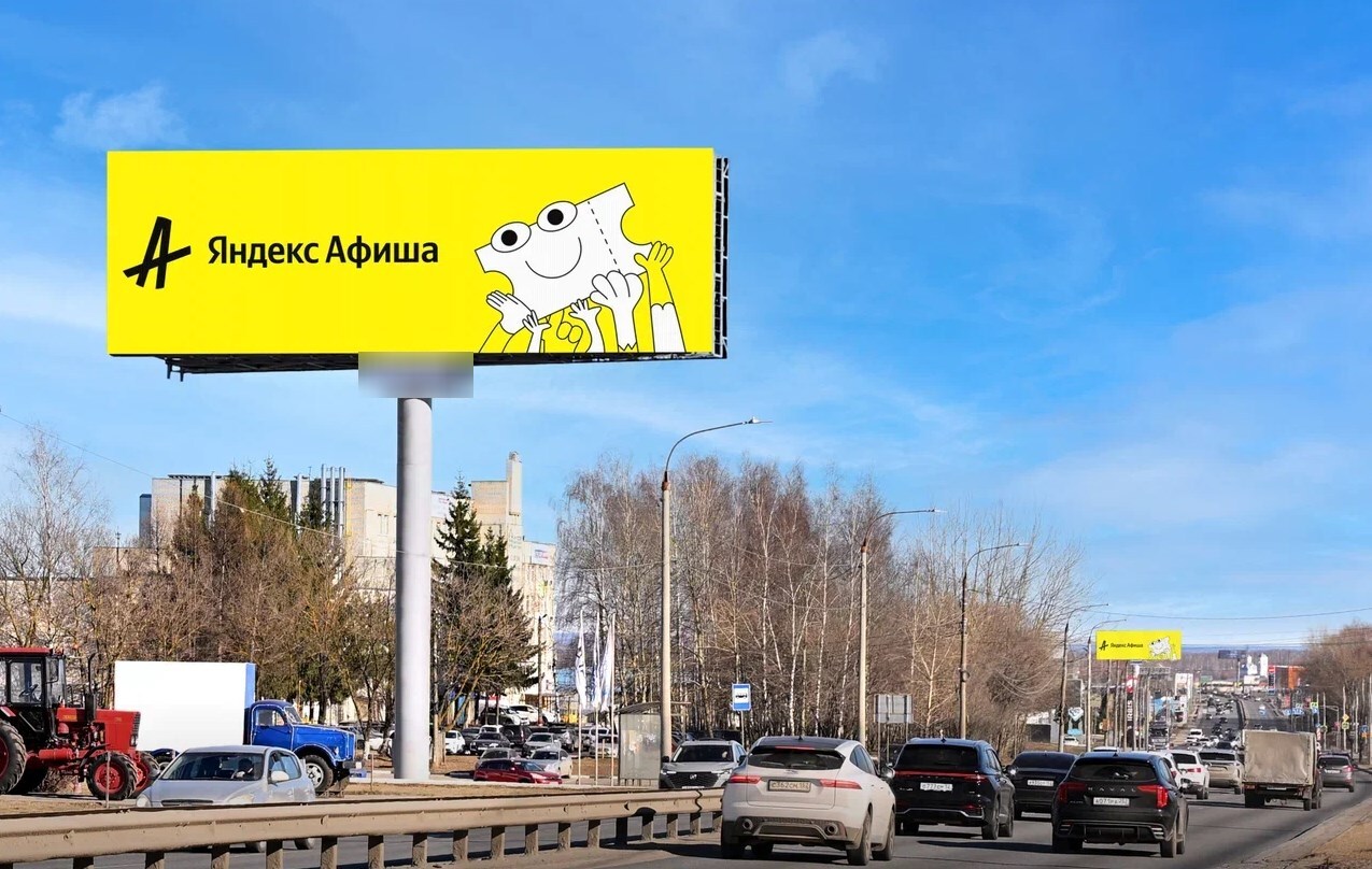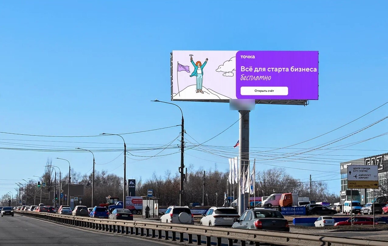 В город. Ролик 5 сек., блок 60 сек., показов в блоке 1, количество показов в сутки 1440, время работы 24 ч. Разрешение экрана 1440х480 px