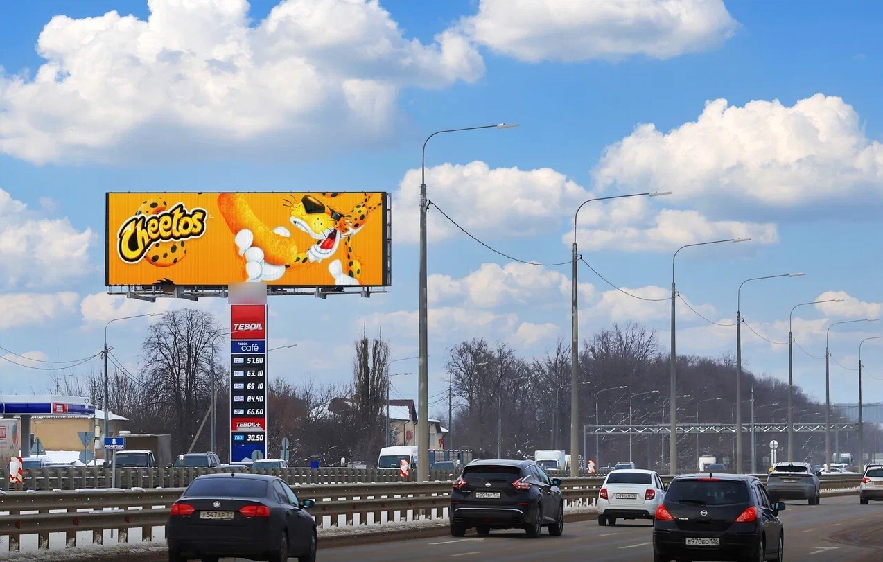 В город. Ролик 5 сек., блок 60 сек., показов в блоке 1, количество показов в сутки 1 440, время работы 24 ч. Разрешение экрана 1800х600 px