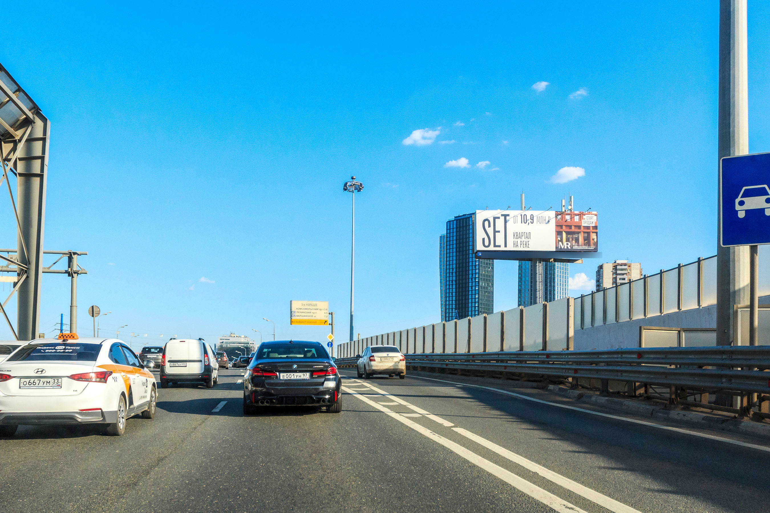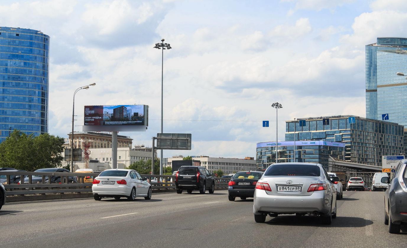 - Описание рекламной конструкции: Конструкция видима при движении по внутреннему кольцу ТТК незадолго перед съездом на Кутузовский проспект. Далее расположены съезды в Деловой Центр и ЦВК «Экспоцентр», на Звенигородское шоссе и Шмидтовский проезд.