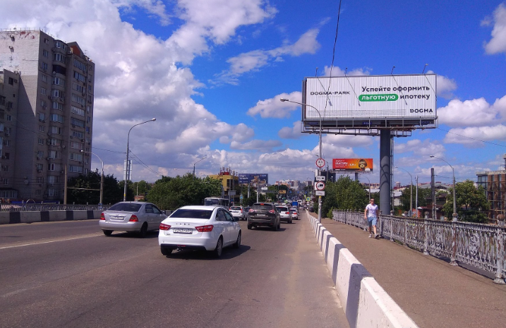 - Описание рекламной конструкции: Двусторонняя динамическая освещенная конструкция. Конструкция расположена в Западном округе г. Краснодара, на улице Тургенева - одной из самых протяженных улиц города с интенсивным движением грузового и легкового автотранспорта и пешеходов. Вблизи находятся: гипермаркет О'КЕЙ, парк тридцатилетия Победы в котором расположены парки аттракционов и аквапарк, остановки общественного транспорта: автобусов, троллейбусов, маршрутных такси. Данная конструкция расположена над "Тургеневским мостом", с которого осуществляется въезд в г. Краснодар и выезд из города в сторону р. Адыгея и Черного моря. Не далеко от выезда расположены: «МЕГА Адыгея», нефтяная компания Роснефть, МЕТРО, сеть автосалонов. Конструкция расположена в непосредственной близости от р. Кубань.