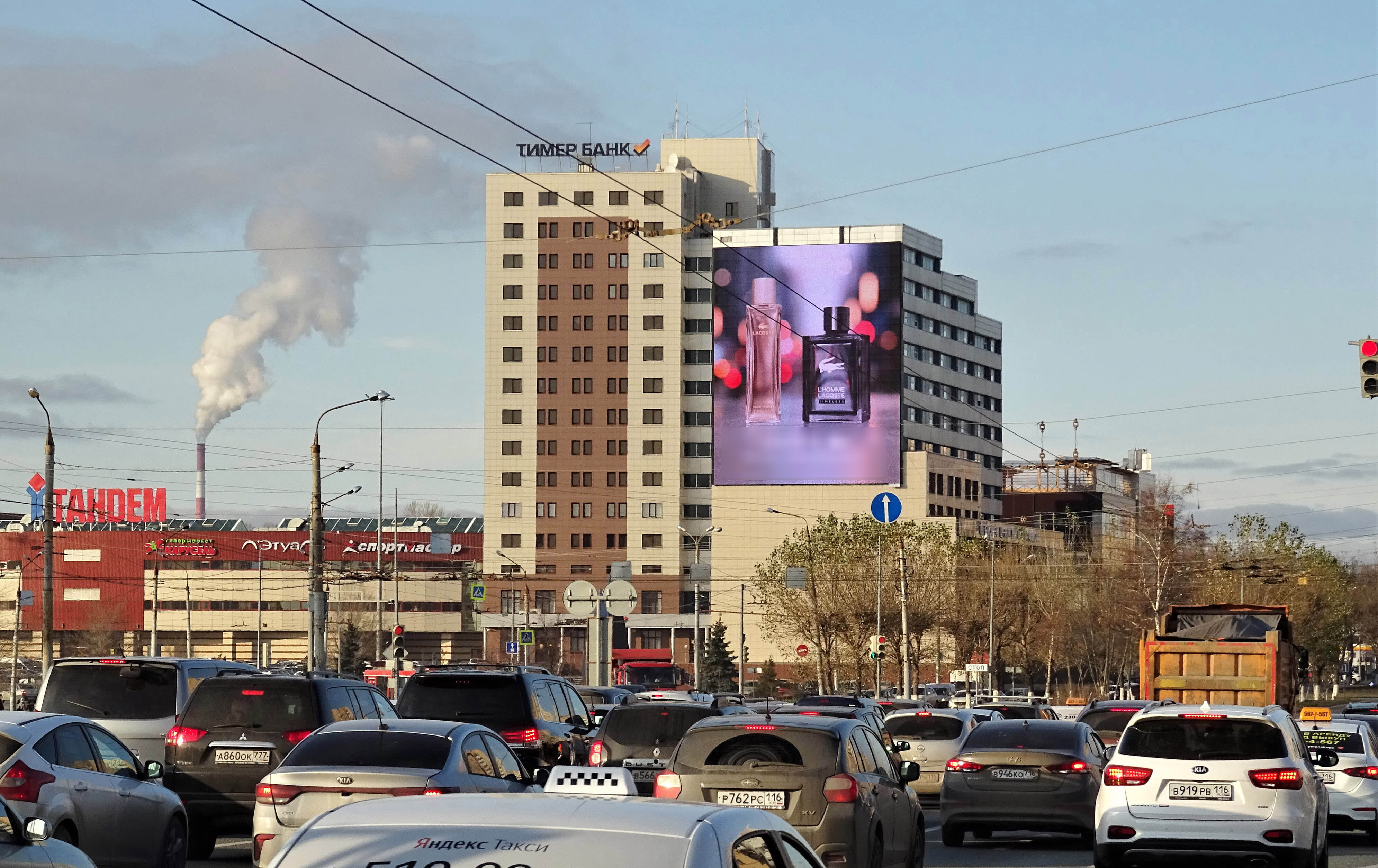 - Описание рекламной конструкции: Медиафасад размером 17х21 м. Время работы с 7-23 часов.