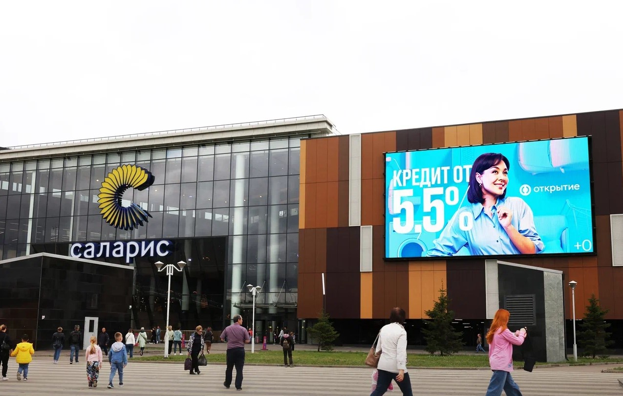 - Описание рекламной конструкции: Цифровые суперсайты и медиафасад (комплекс экранов): 18x10 м. + 37x17 м. Площадь 809 м2.