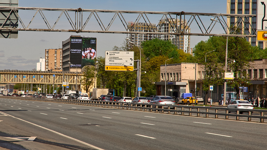 Преимущества: медиафасад расположен на оживленном перекрестке города, близость регулируемого пешеходного перехода снижает скорость автомобильного потока, качественная цветопередача гарантирует внимание как автомобилистов, так и пешеходов, препятствий для обзора нет Направление движения: по Варшавскому шоссе в сторону Тульской эстакады