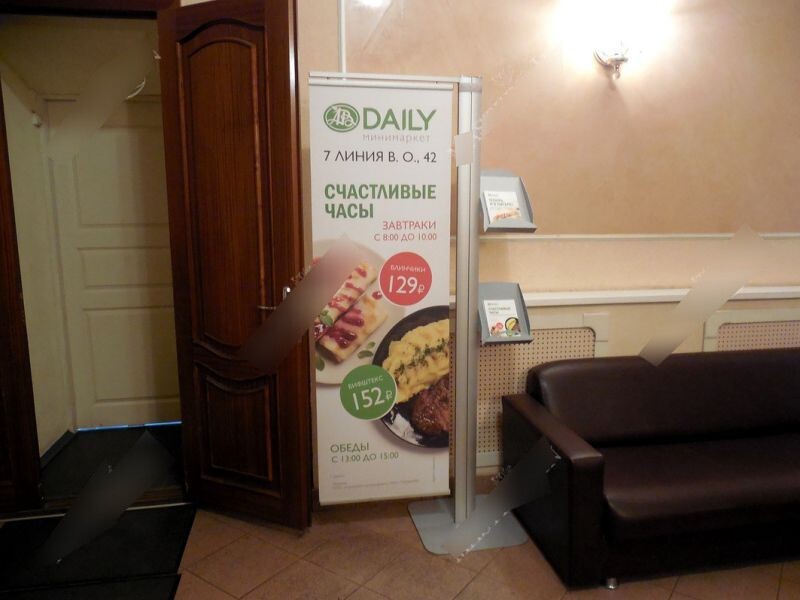 Фотография рекламного носителя, тип: Диспенсер листовок, адрес: Бизнес-центр «ТЦ“Якорь”», 8 линия В.О. ул., д.29, Санкт-Петербург, Россия. Сторона/вариант №656666