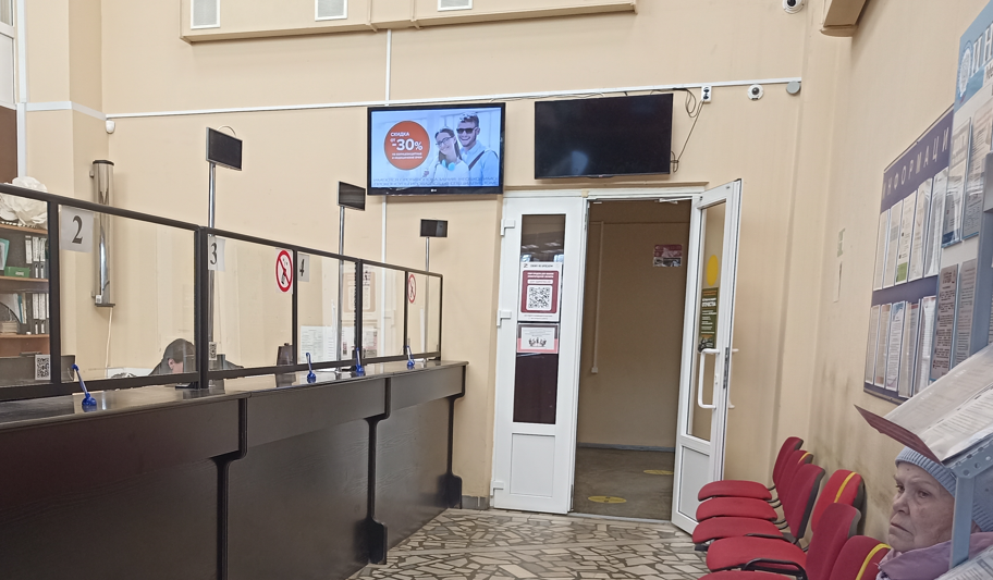 Фотография рекламного носителя, тип: Видеоэкран, адрес: МФЦ «Березовская ул., д.96», Березовская ул., д.96, Нижний Новгород, Нижегородская область, Россия. Сторона/вариант №1010820