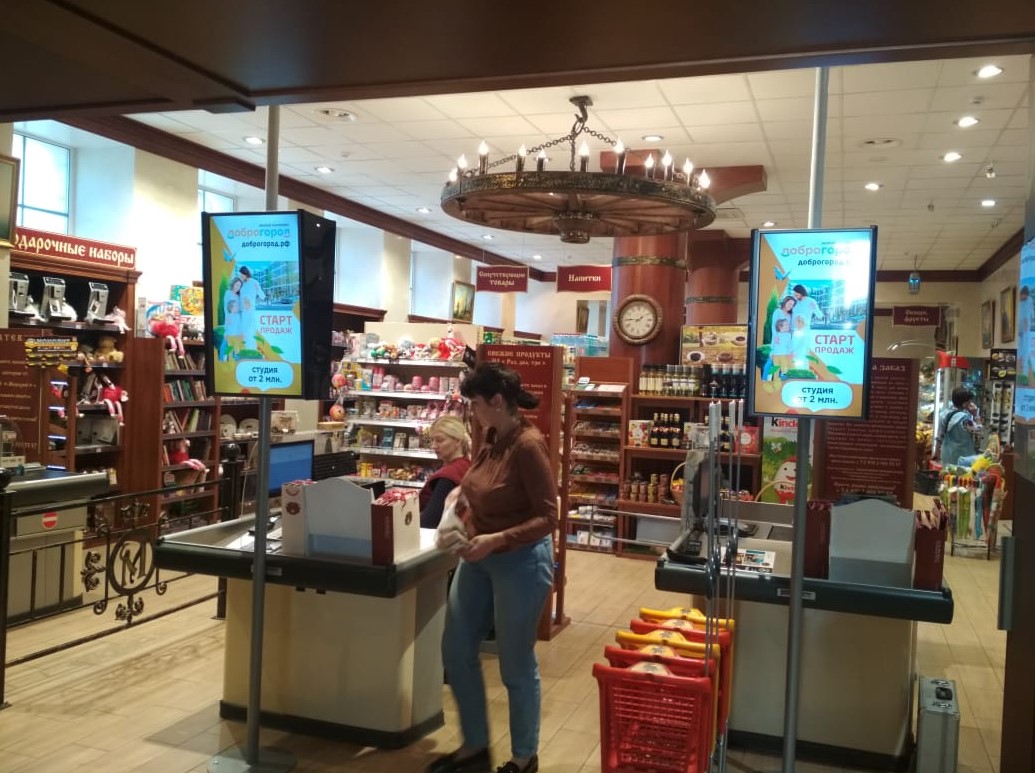 Фотография рекламного носителя, тип: Видеоэкран, адрес: Супермаркет «Меркурий», Гоголя ул., д.28, Севастополь, Россия. Сторона/вариант №796722