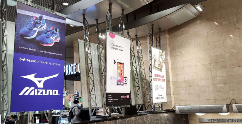 Расположение: Четырехсторонние медиаколонны в атриуме «Москва»