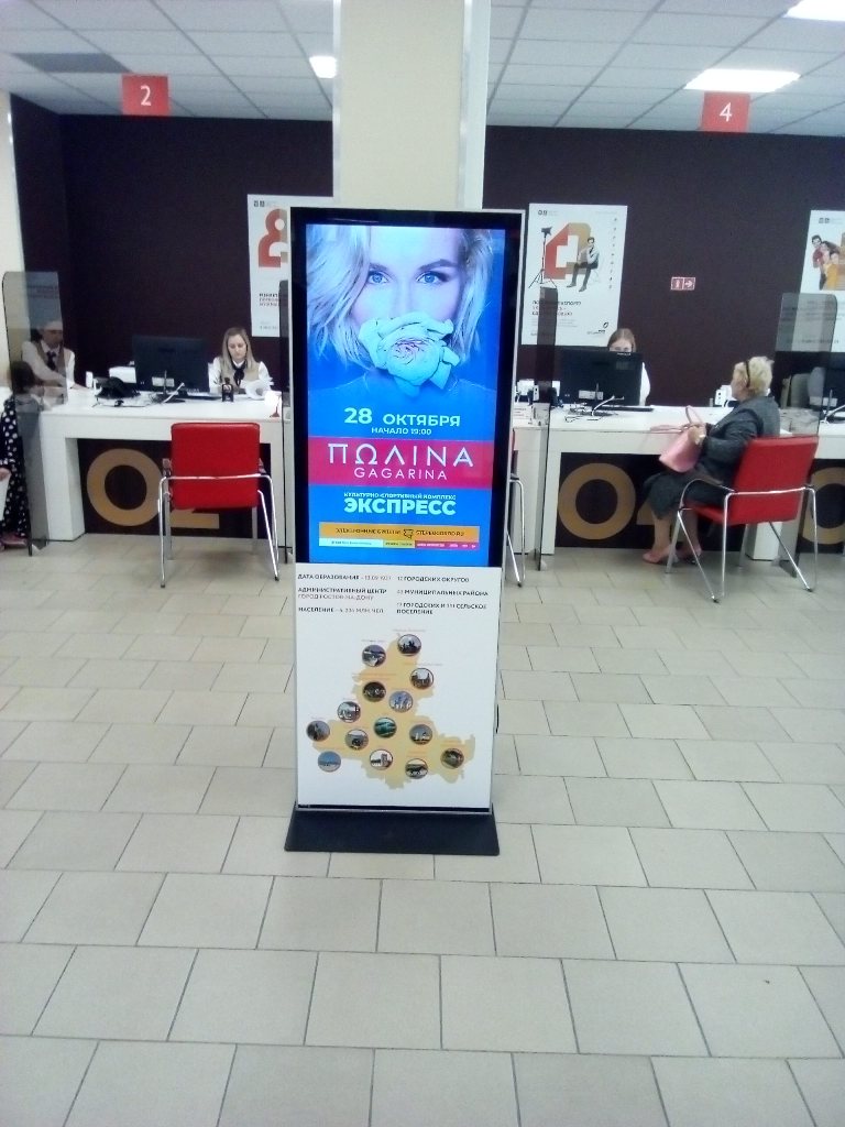 Фотография рекламного носителя, тип: Видеоэкран, адрес: МФЦ «Коммунистический пр-т., д.32/3», Коммунистический пр-т., д.32/3, Ростов-на-Дону, Ростовская область, Россия. Сторона/вариант №1068588