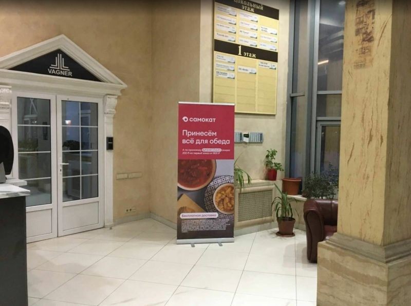 Фотография рекламного носителя, тип: Постер/баннер, адрес: Бизнес-центр «Красный богатырь», Краснобогатырская ул., д.2, стр.1, Москва, Россия. Сторона/вариант №1404749