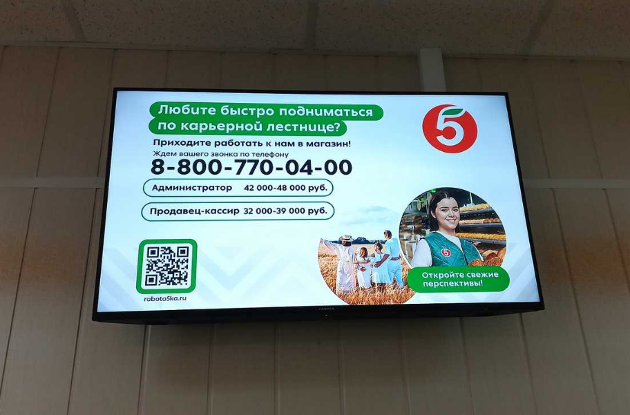 Фотография рекламного носителя, тип: Видеоэкран, адрес: МФЦ «», Кулахметова ул., д.25, корп.1, Казань, Республика Татарстан, Россия. Сторона/вариант №1349515