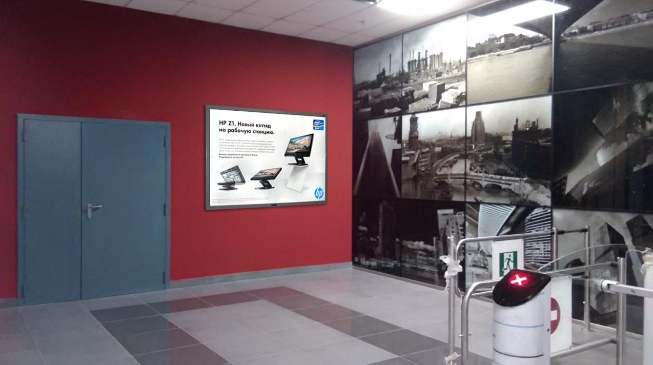 Экран 80 дюймов (8 шт.) и 35 дюймов 1 шт., хронометраж любой, трансляция 1 раз в 3 минуты, без звука
