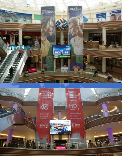 Расположение: Холлы при входе в 1-й, 3-й, 4-й, купол с первого уровня паркинга.