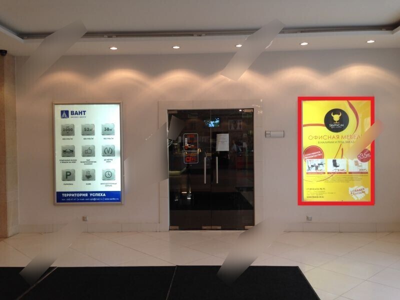 Фотография рекламного носителя, тип: Лайтбокс, адрес: Бизнес-центр «Вант», Обуховской обороны пр-т., д.112, корп.2З, Санкт-Петербург, Россия. Сторона/вариант №826984