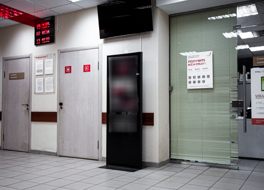Фотография рекламного носителя, тип: Видеоэкран, адрес: МФЦ «», Победы ул., д.15, корп.3, Электросталь, Московская область, Россия. Сторона/вариант №1371360