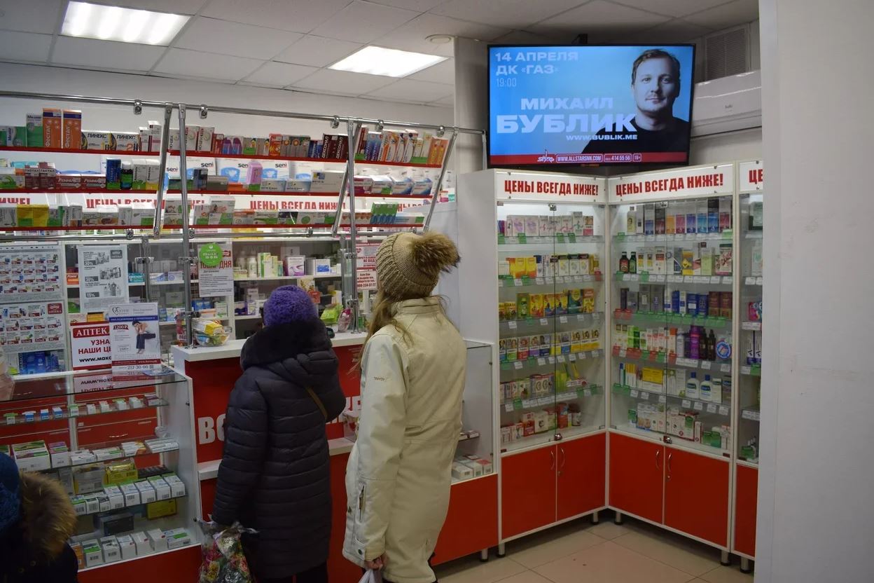 Фотография рекламного носителя, тип: Видеоэкран, адрес: Аптека «Максавит», Родионова ул., д.195, Нижний Новгород, Нижегородская область, Россия. Сторона/вариант №872836