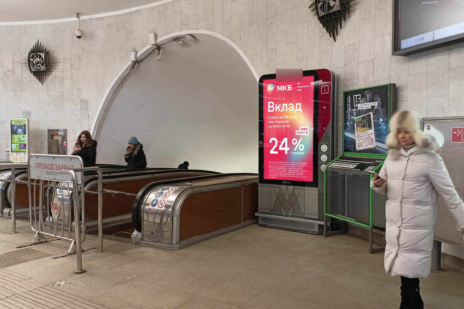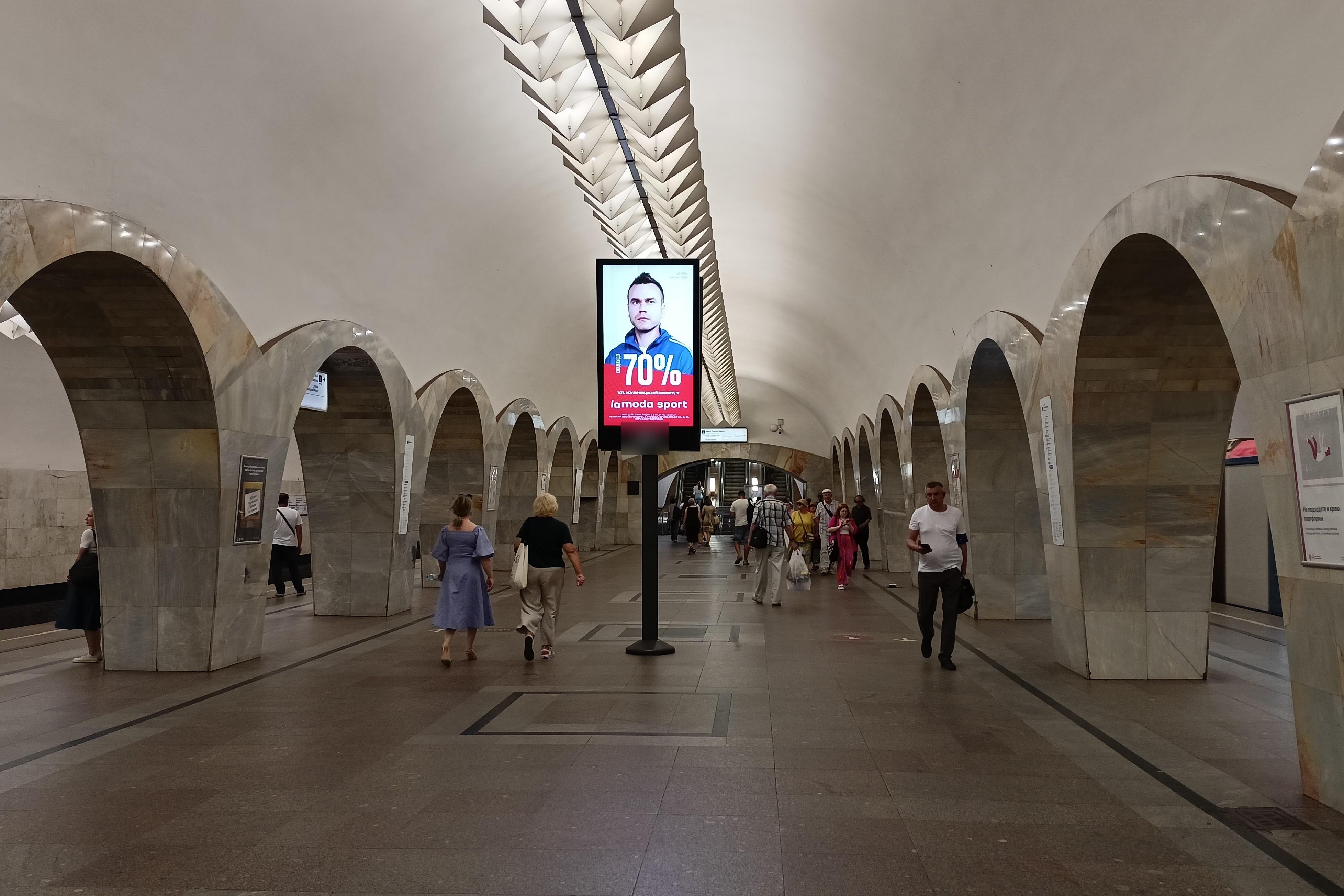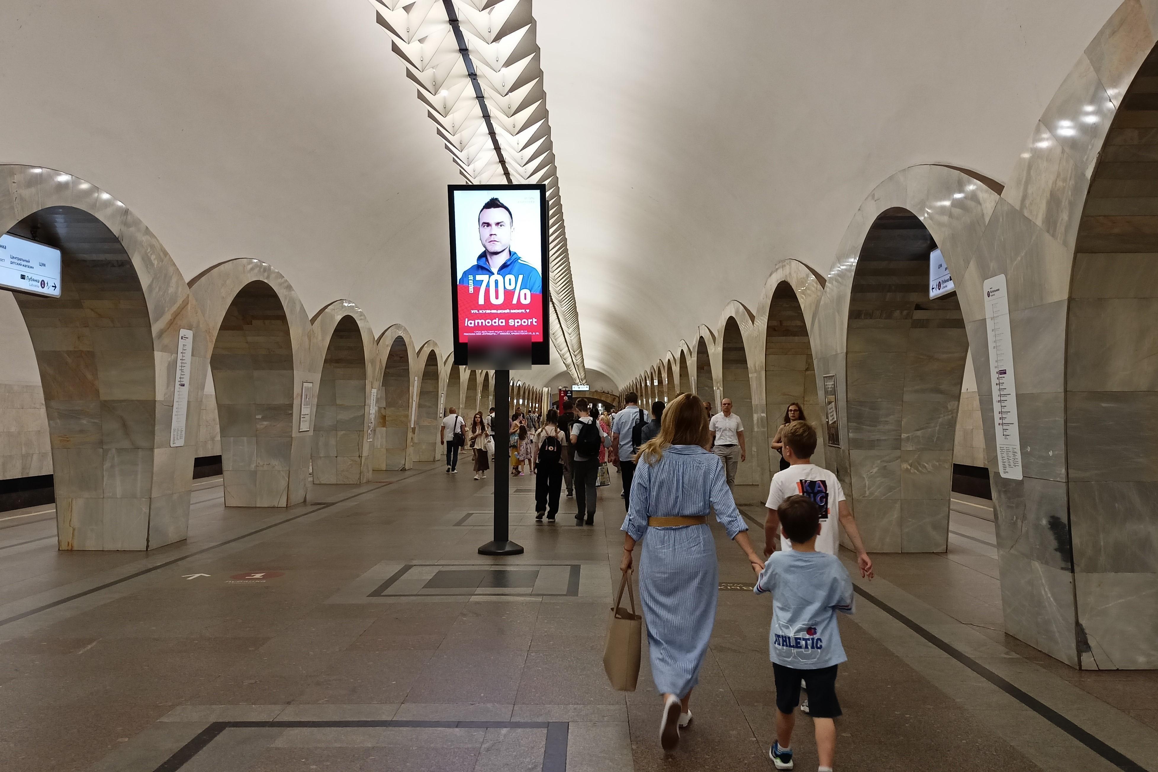 Реклама на станции метро «Кузнецкий мост», линия Таганско-Краснопресненская, Москва