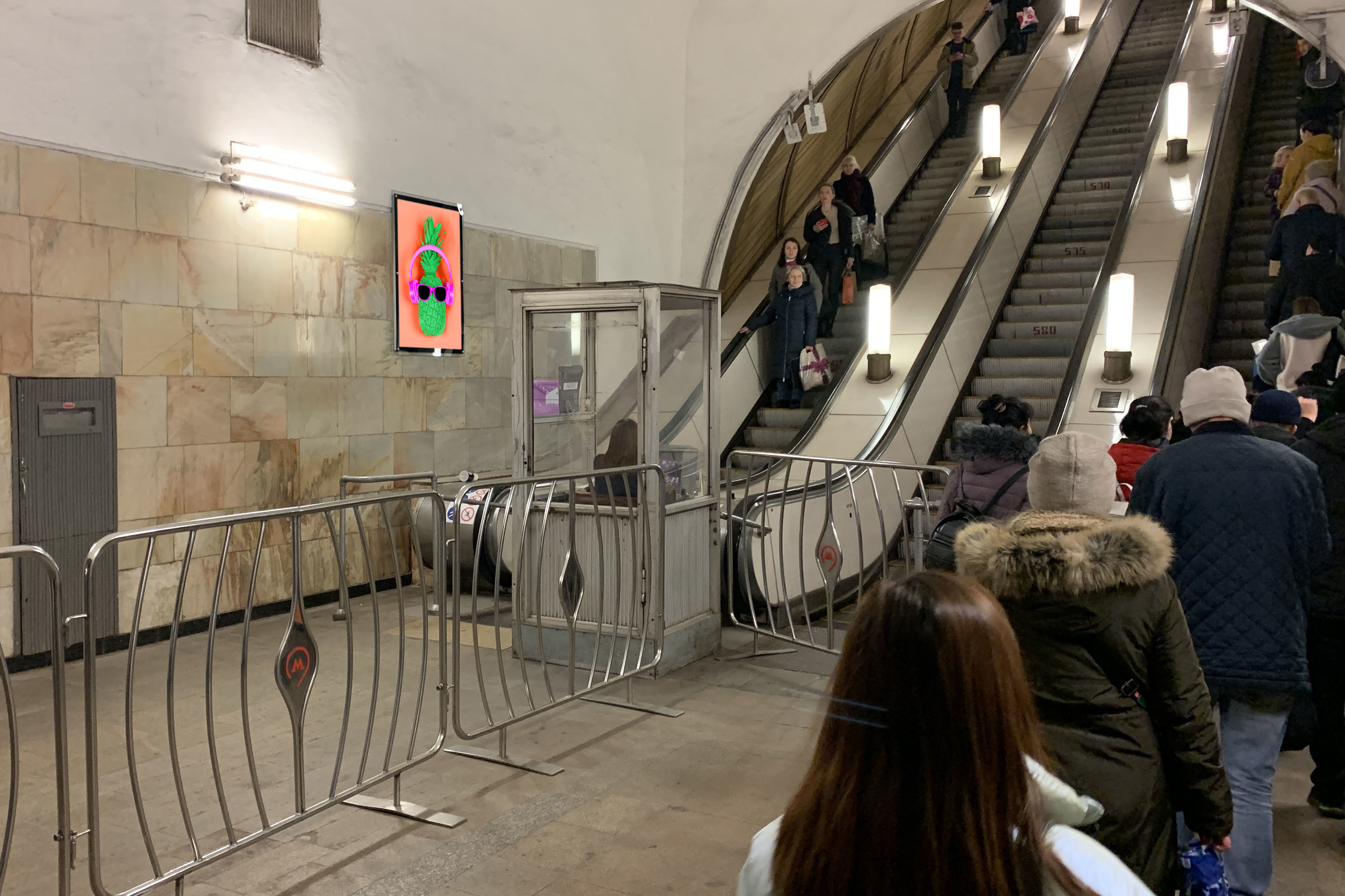 Расположение: Северный эскалаторный наклон, нижняя площадка при спуске из вестибюля на платформу, поз. 6