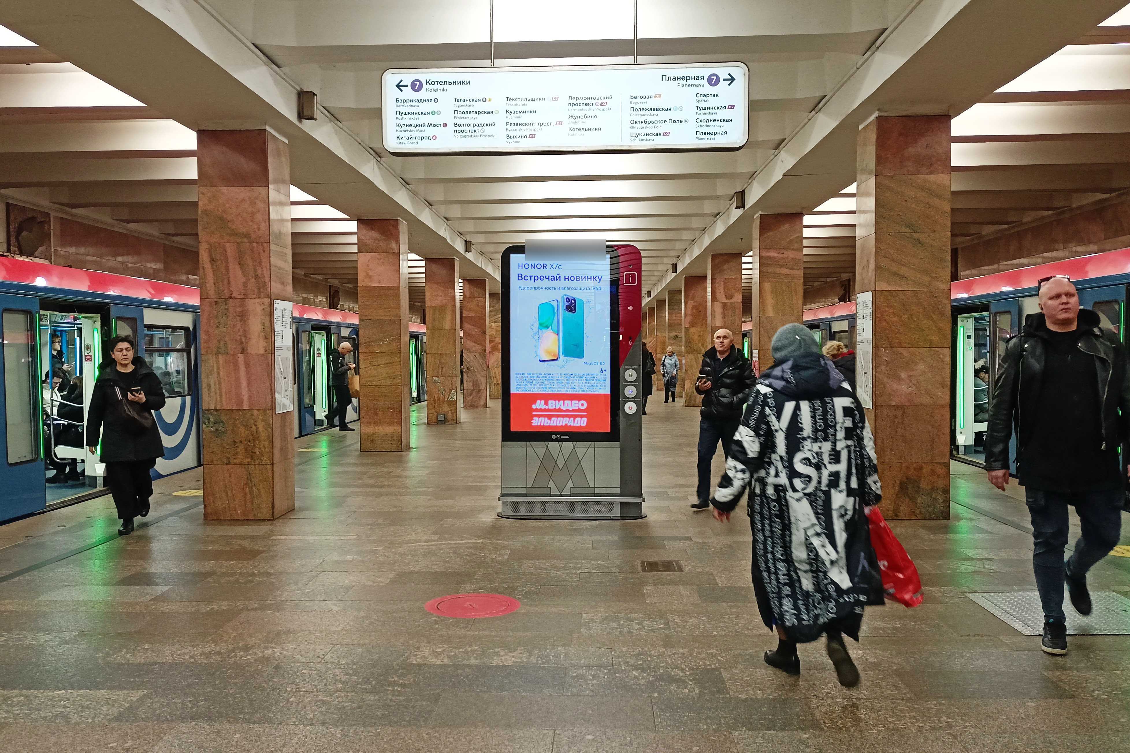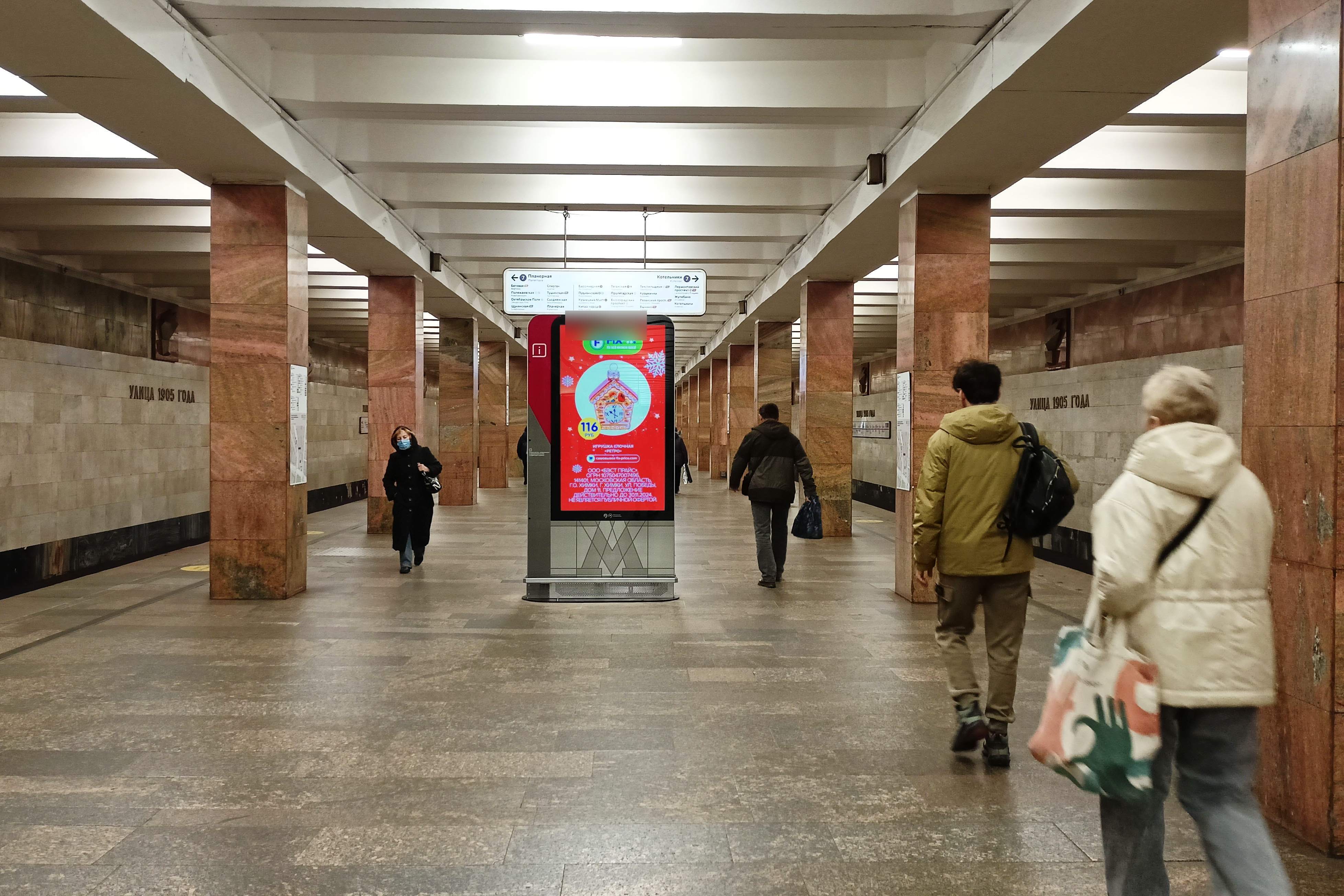 Реклама на станции метро «Улица 1905 года», линия Таганско-Краснопресненская, Москва