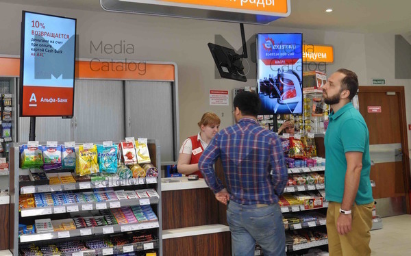 Фотография рекламного носителя, тип: Видеоэкран, адрес: АЗС «Лукойл», Тэцевская ул., д.11а, Казань, Республика Татарстан, Россия. Сторона/вариант №1096080