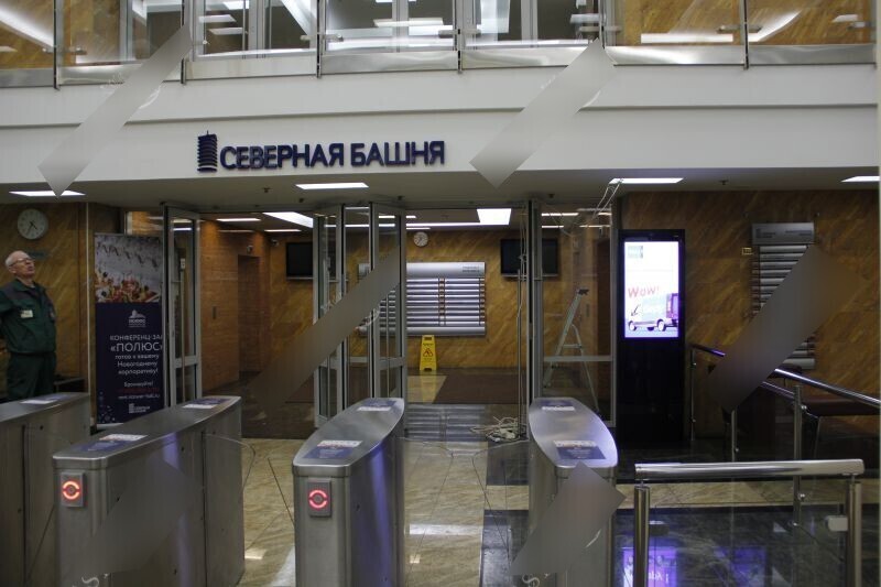 Фотография рекламного носителя, тип: Диспенсер листовок, адрес: Бизнес-центр «Северная Башня», Тестовская ул., д.10, Москва, Россия. Сторона/вариант №830927